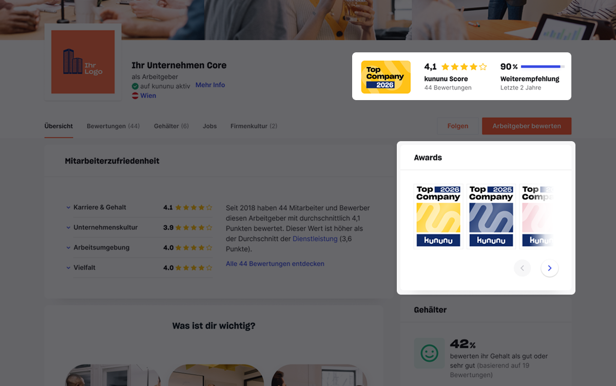 Tipp: Auf Ihrem kununu-Arbeitgeberprofil unter Awards sehen Sie,