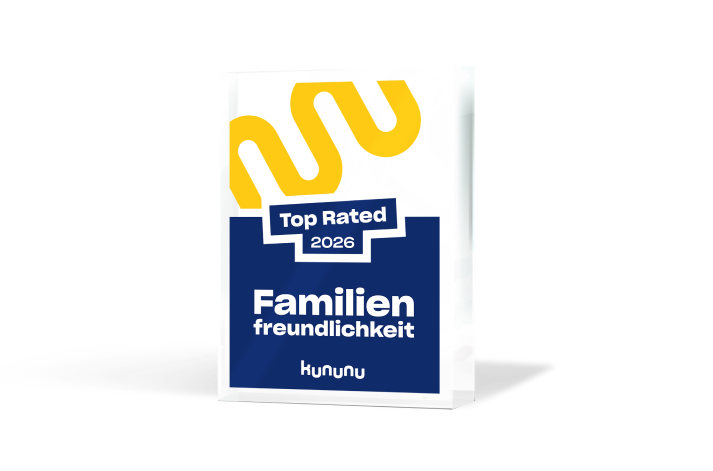 Das Top Rated-Siegel Familienfreundlichkeit basiert ausschließlich auf authentischen Bewertungen von Mitarbeitenden auf kununu. Es ist kein Audit und keine Selbstauskunft, sondern macht sichtbar, wie die Vereinbarkeit im Arbeitsalltag tatsächlich erlebt wird.